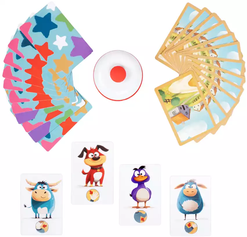 В корзинуНастольная игра Переполох на ферме - это увлекательная игра для детей и взрослых. Ужасный переполох случился на ферме, и все животные разбежались по окрестностям. Помоги им вернутся на ферму. Но не забывай о том, что рядом бродит голодный волк. Главная цель проста – собрать коллекцию, в которой будет хотя бы по одному представителю четырёх видов: бдительная собака, важная корова, пушистая овца и шустрая утка. Казалось бы, что может быть сложного? Но не тут-то было! Животные так и норовят разбежаться, а в кустах поджидает главный враг всех фермеров – серый волк!